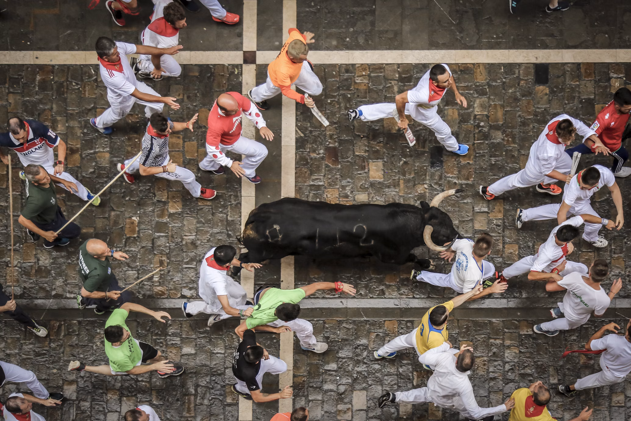 奔牛節的起源可以追溯到 14 世紀,當時商人驅趕牛群到市集,後來逐漸演變成奔牛活動。每天清晨,約 50 頭公牛會被放出牛棚,沿著 820 公尺的路線狂奔至鬥牛場,許多人會穿著白衣紅巾參加或在陽台觀賞,氣氛緊張刺激。